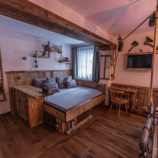 Zirbenholzbetten sowie Zirbenholzwandverkleidungen in den Schlafzimmern